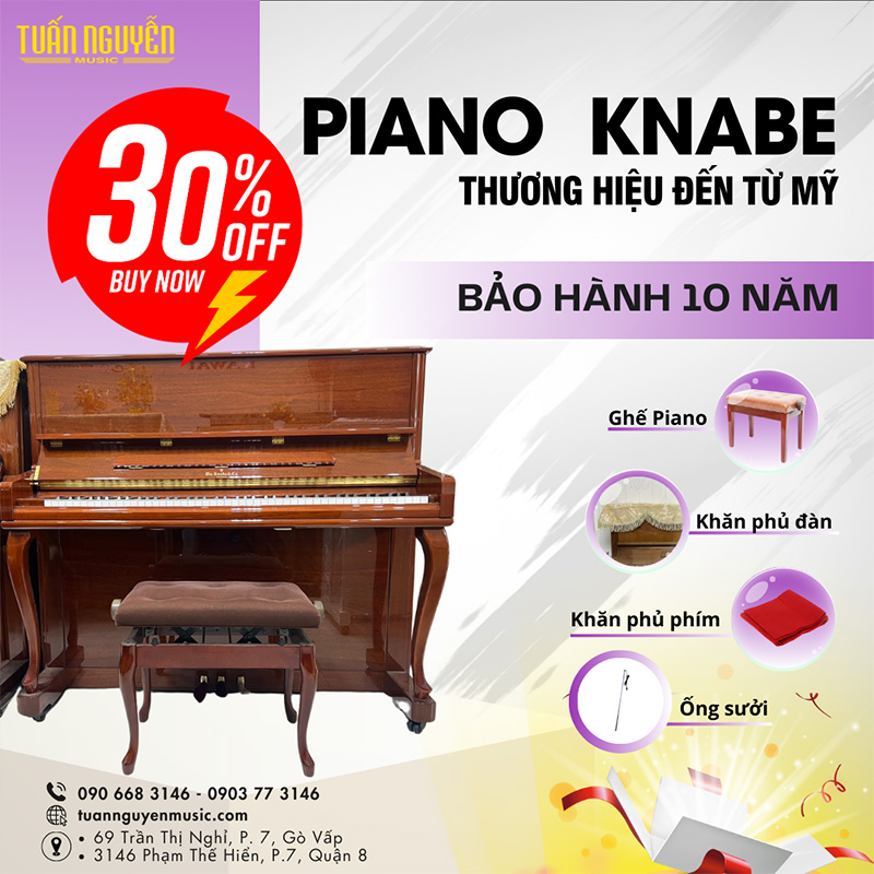 Nếu quý khách hàng đang tìm kiếm mua đàn piano cơ mới trong khoảng giá 100 triệu đổ lại, tìm mua đàn mới nguyên thùng của thương hiệu chính hãng, thì KNABE WMV-132FD là một lựa chọn rất sáng giá. Tuấn Nguyễn Music bảo hành đàn piano KNABE 10 năm với các kỹ thuật viên lành nghề, có chứng nhận của Nhật Bản, để quý khách hàng an tâm sử dụng.