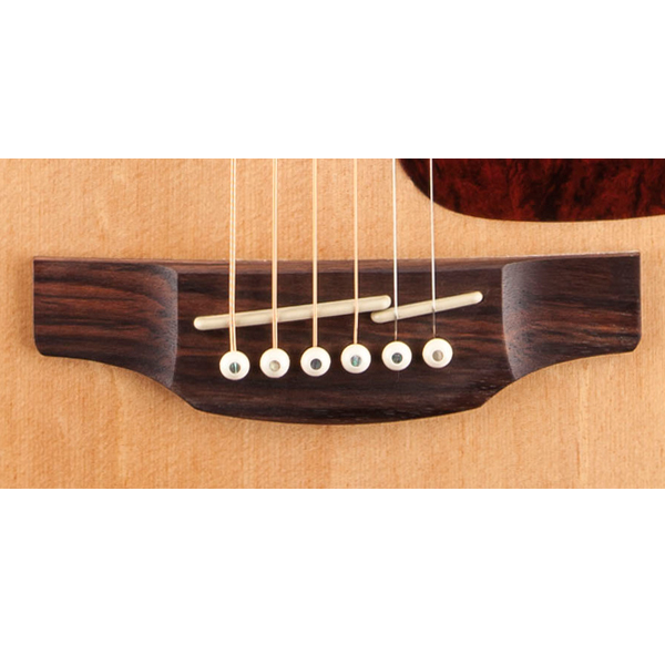 - Mặt trước đàn làm từ gỗ Solid spruce mang lại tốc độ truyền âm thanh tốt và có tần số âm thanh đáp ứng được từ thấp đến cao.